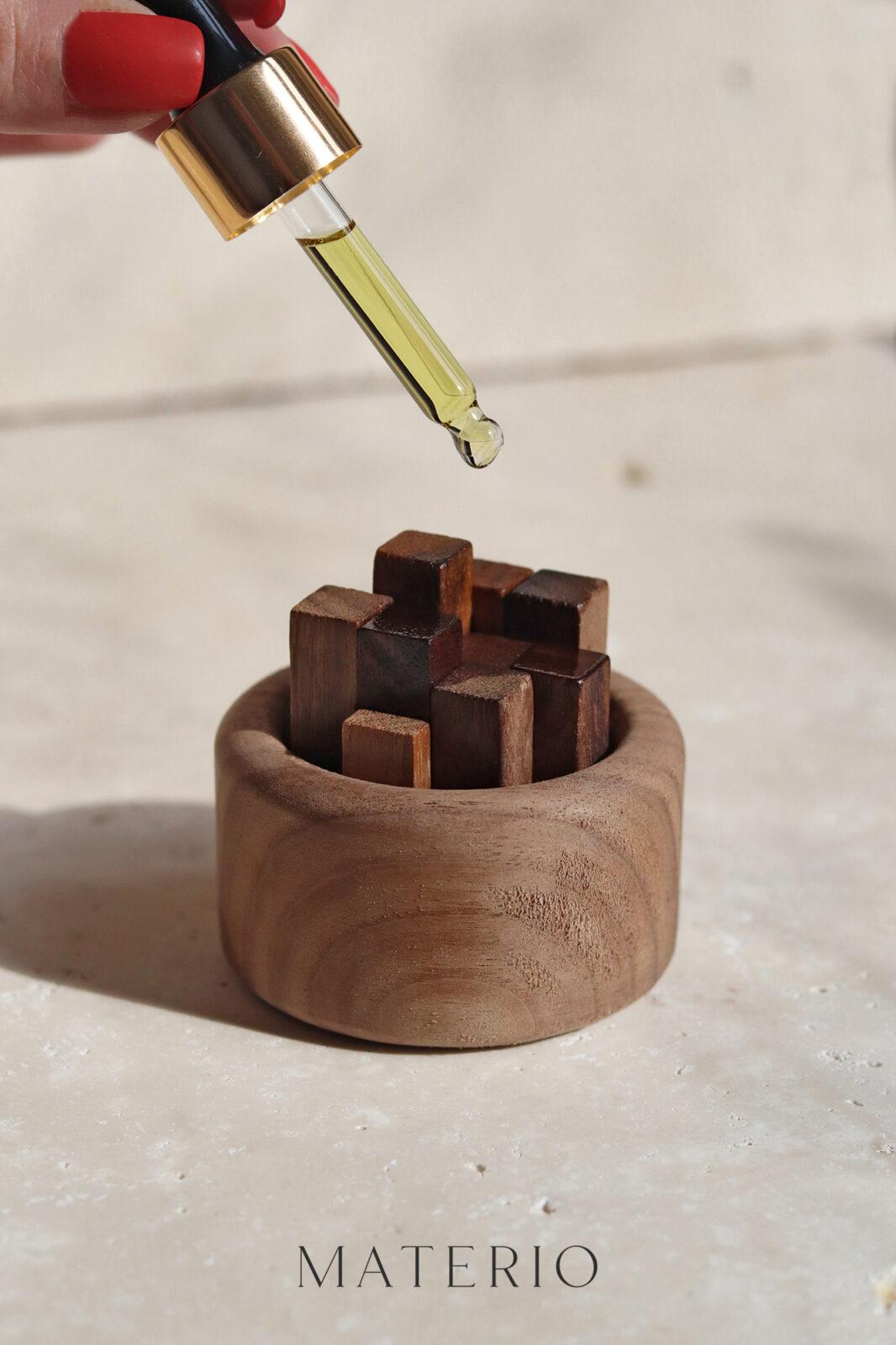 Esencje MATERIO to autorskie kompozycje z czystych naturalnych olejków eterycznych, łączone zgodnie ze sztuką perfumiarstwa. Oprócz pięknego naturalnego zapachu zapewniają również lecznicze właściwości aromaterapeutyczne, które dobroczynnie działają na Twój nastrój, pomagają się zrelaksować i przywrócić wewnętrzną harmonię.